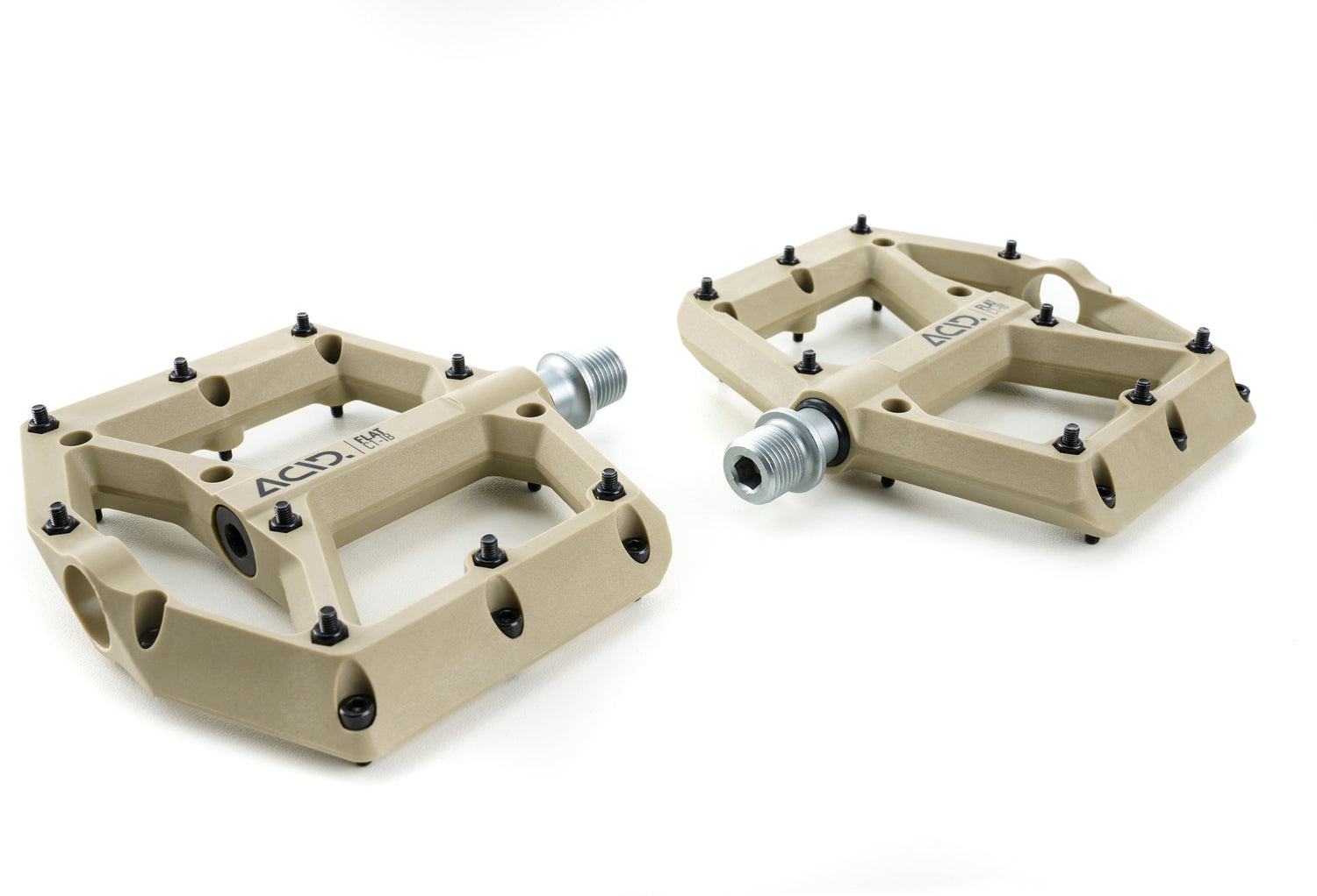 Hier in het bikepark kent men elke bocht, elke sprong en elke wortel. Pure adrenaline! Op de ACID FLAT pedalen kan ik volledig vertrouwen. Met hun verstelbare pins en het grote oppervlak voel je je zelfs op het ruigste wortelveld stevig verbonden met de fiets, maar kun je toch meteen loskomen als de truc niet helemaal gaat zoals gepland.