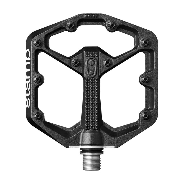 De Stamp-pedalen zijn door Crankbrothers-ingenieurs geoptimaliseerd voor de verbinding tussen schoen en pedaal. Twee verschillende maten zorgen voor een optimale verbinding tussen schoen en pedaal. Door de minimale hoogte wordt een laag pedaalgewicht bereikt. Het concave platform (15/13/15 mm) en de 10 verwisselbare pinnen per zijde houden de voet stevig op zijn plaats.