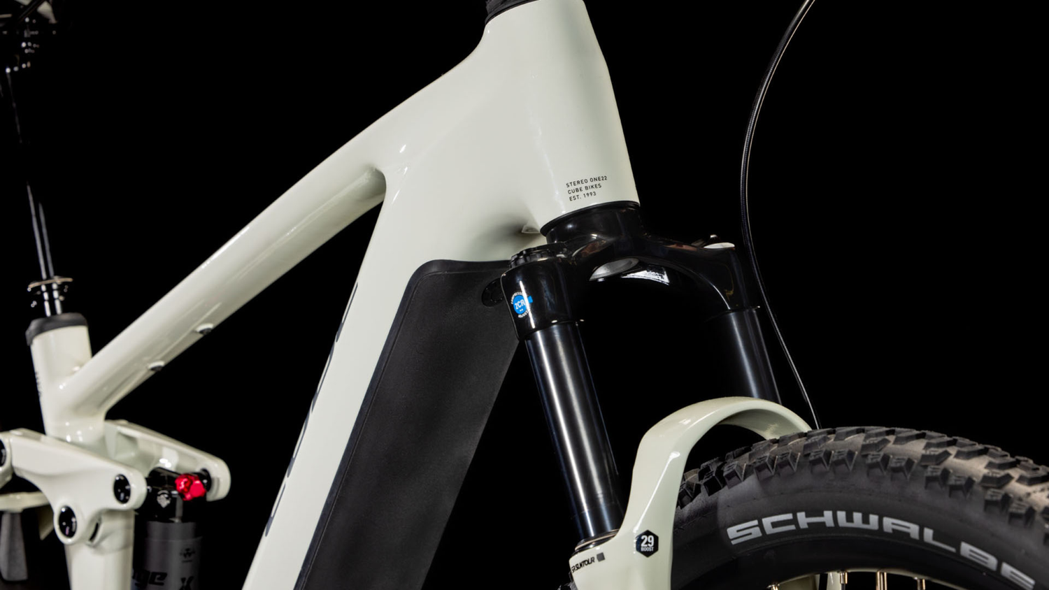 • SR Suntour luchtgeveerde voorvork en demper met CUBE FSP 4-Link vering