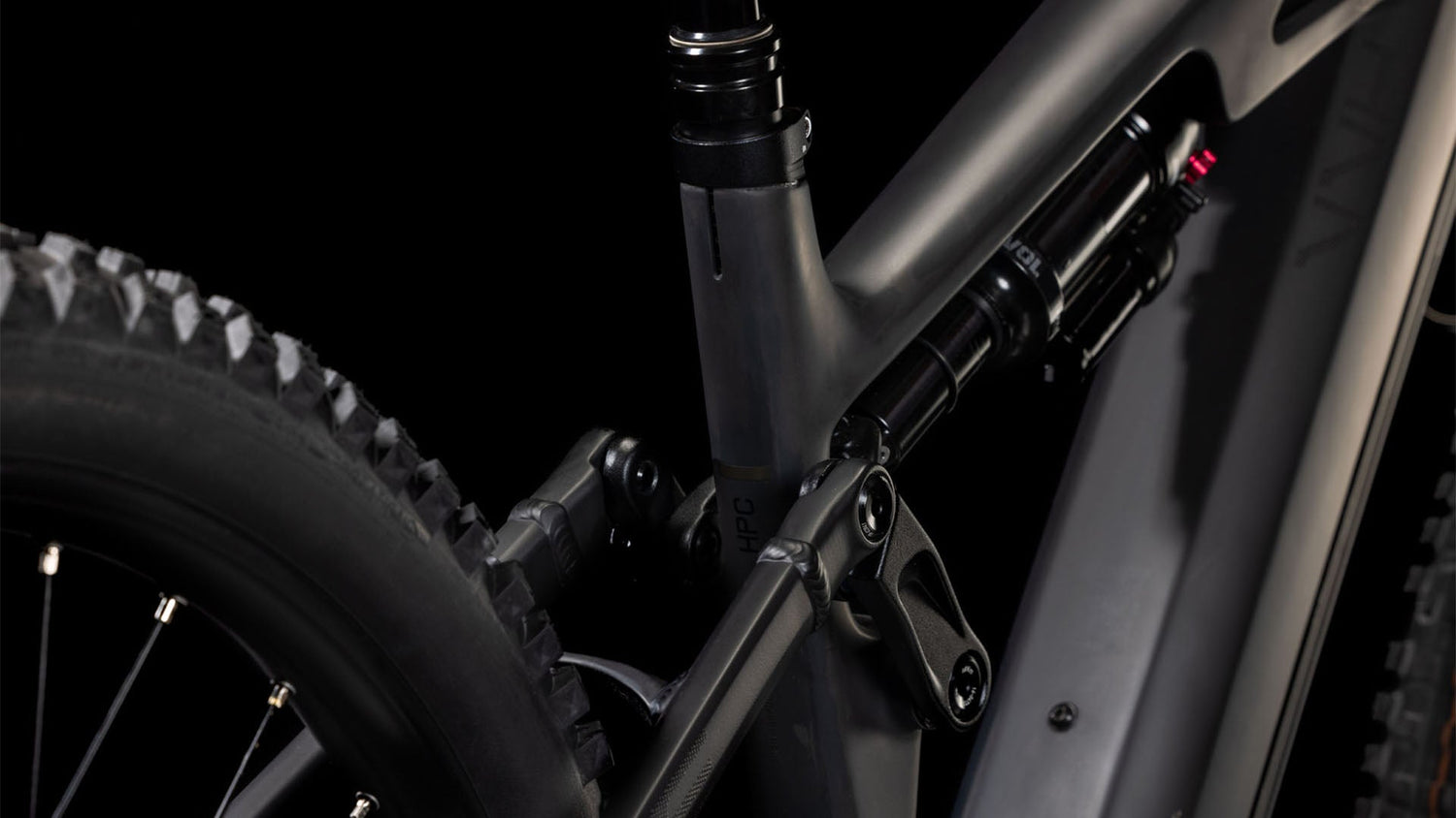 Frame: Het frame van de Stereo Hybrid ONE77 HPC is werkelijk een klasse apart, want hier komen 170 mm veerweg aan de voorkant en achterkant samen met een Mullet-setup met een 29 inch voorwiel en een 27,5 inch achterwiel. Daarmee worden Big-Mountain-trail-dromen werkelijkheid! Zoals altijd bij CUBE tot in detail perfect ontworpen, geldt dat ook voor de rest: Integrated Cable Routing zorgt voor een superstrakke look en reduceert het onderhoud tot een minimum. Daarnaast is er een balhoofd met hoekverstelling, waarmee het rijgedrag aangepast kan worden aan individuele voorkeuren en eisen. Bovendien hebben we de 800 Wh sterke PowerTube-accu netjes en stijlvol geïntegreerd in de carbon onderbuis, direct boven de Bosch CX-motor. Voor eenvoudigere beschikbaarheid van reserveonderdelen is er een UDH op de aluminium achterbouw – en omdat we ook een Direct Mount kettinggeleider hebben gemonteerd, blijft deze fully zelfs onder moeilijke omstandigheden maar doorgaan, doorgaan en nog eens doorgaan.