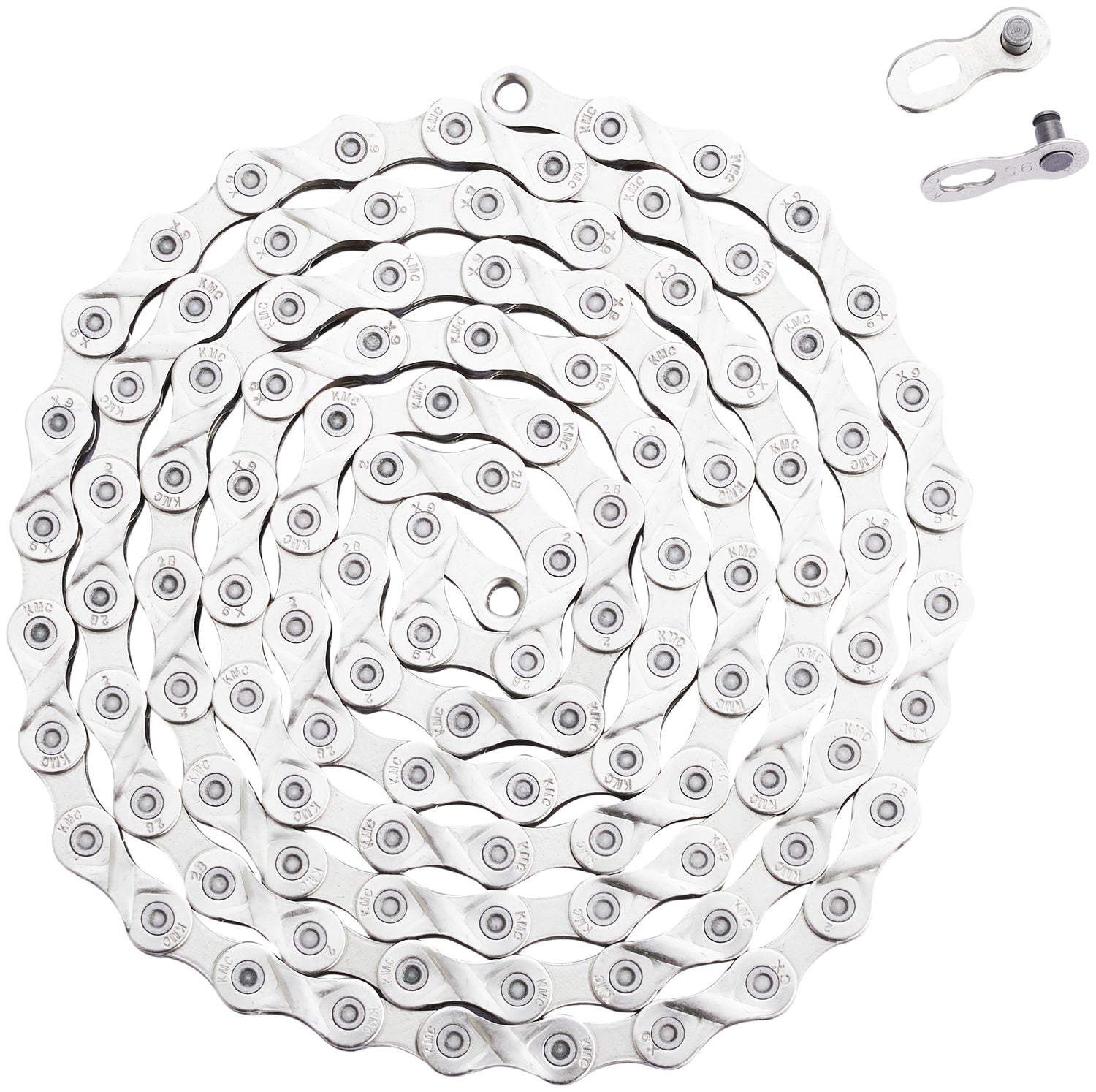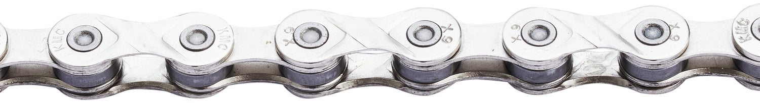 Die KMC X9 Kette ist kompatibel mit allen Shimano, Campagnolo und SRAM 9-fach Schaltsystemen. Sie besitzt eine vernickelte Oberfläche und ist nicht laufrichtungsgebunden.