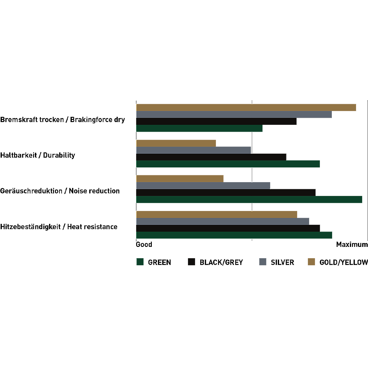 - De slijtagegraad is gelijk aan die van conventionele remblokken.