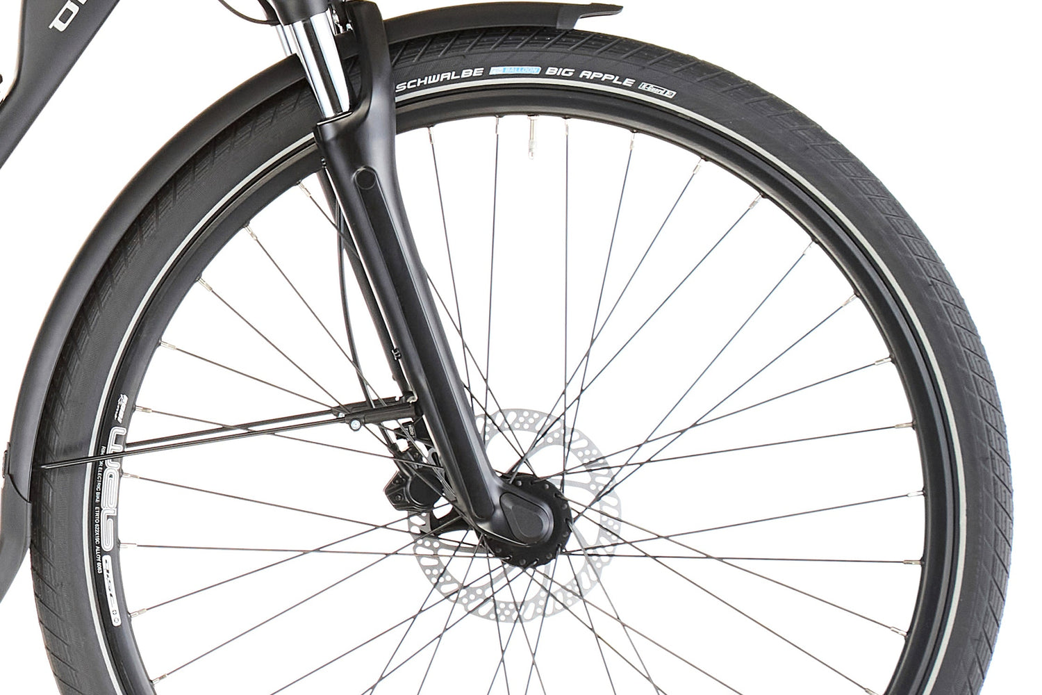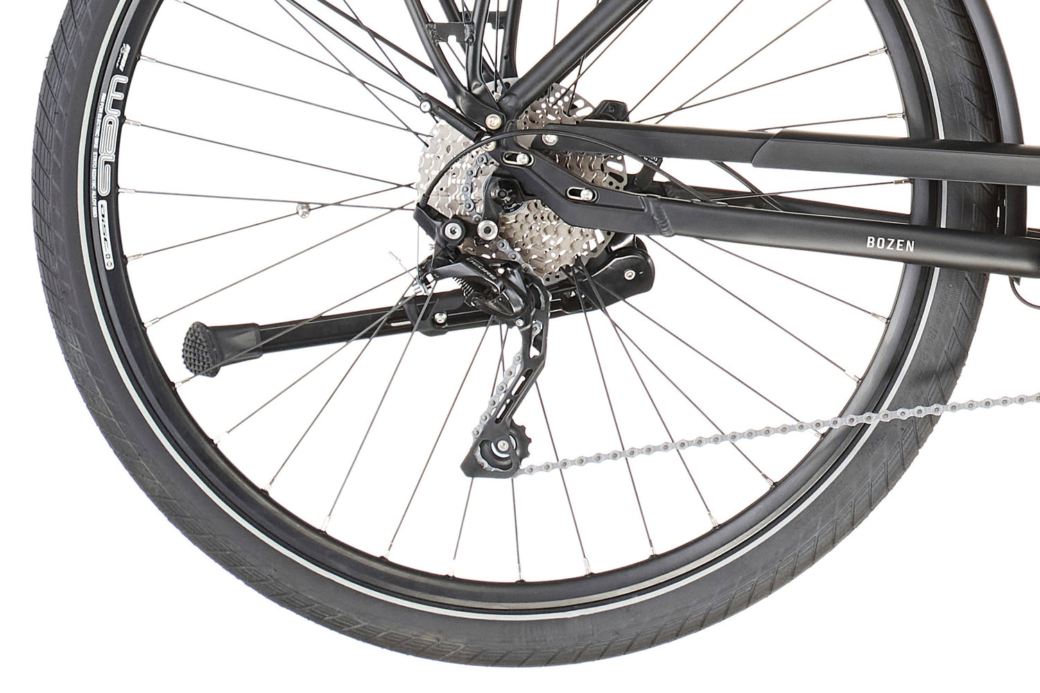 De Bozen biedt je dankzij de verende voorvork met een veerweg van 80 millimeter een zeer comfortabele rijervaring en de brede, licht geprofileerde Schwalbe-banden met lekbescherming maken ook ritten over veldwegen mogelijk.