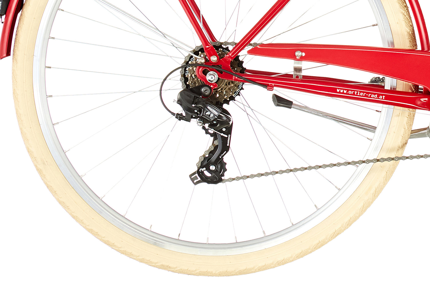 Het verlichtingssysteem in retrostijl is uiteraard StVZO-goedgekeurd, spatborden en kettingkasten in framekleur ronden de fiets qua stijl en complete uitrusting af. Dankzij de lage instap en het grote verstelbereik van stuur en zadel kunnen rijders tussen de 1,55 en 1,85 meter comfortabel rijden met de Ortler Detroit EQ unisize framemaat.
