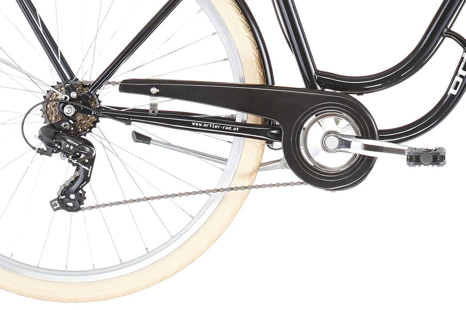 Het verlichtingssysteem in retrostijl is uiteraard StVZO-goedgekeurd, spatborden en kettingkasten in framekleur ronden de fiets qua stijl en complete uitrusting af. Dankzij de lage instap en het grote verstelbereik van stuur en zadel kunnen rijders tussen de 1,55 en 1,85 meter comfortabel rijden met de Ortler Detroit EQ unisize framemaat.
