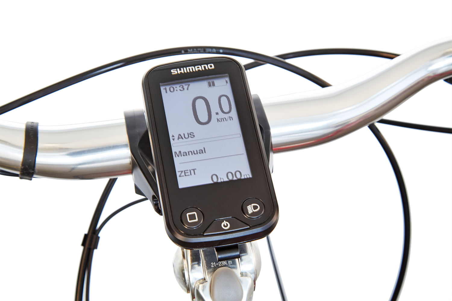Het uitrustingspakket wordt afgerond met een Büchel LED-verlichtingssysteem, een stabiele bagagedrager en een stijlvolle bagagetassenset. De Shimano Steps aandrijving is een modern middenmotorsysteem dat zich kenmerkt door hoge betrouwbaarheid, veel kracht en een lange actieradius. De bijzondere highlights van de Shimano Steps aandrijving zijn de loopondersteuning, het multifunctionele display en de hoge actieradius. De accu is na 2 uur al voor 80% opgeladen en na 4 uur volledig. Ook is de accu dankzij de geïntegreerde laadpoort direct op de fiets op te laden.