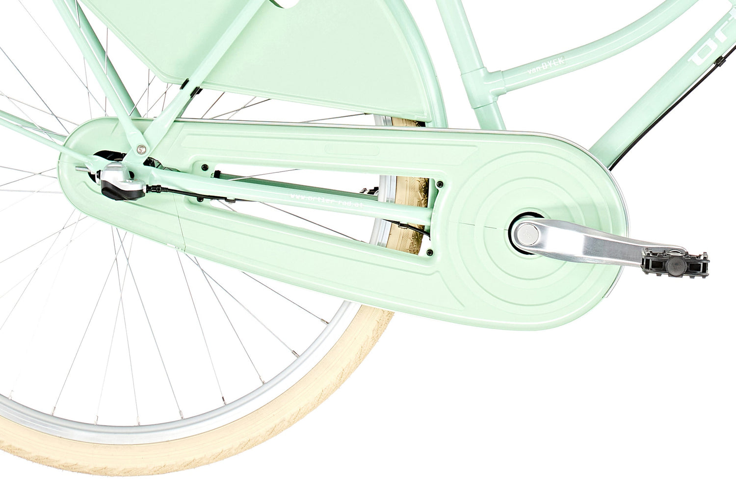 De Ortler Van Dyck is bedoeld voor iedereen die een moderne fiets zoekt in de stijl van de goede oude 'Hollandfiets'. Het motto was duidelijk: eenvoud en terugbrengen tot het essentiële, om een Hollandfiets met hoogwaardige afwerking tegen een aantrekkelijke prijs te realiseren. De stootvaste poedercoating sluit het netjes afgewerkte stalen frame betrouwbaar af. Het vermijden van slijtagegevoelige onderdelen en de Shimano Nexus 3-versnellingsnaaf met terugtraprem maken de Ortler Van Dyck tot een trouwe metgezel voor jaren. Het geheel wordt afgerond met een betrouwbare Shimano naafdynamo en een moderne LED-standachterlicht. Zo wordt de Ortler Van Dyck de ideale metgezel in het stadsverkeer.
