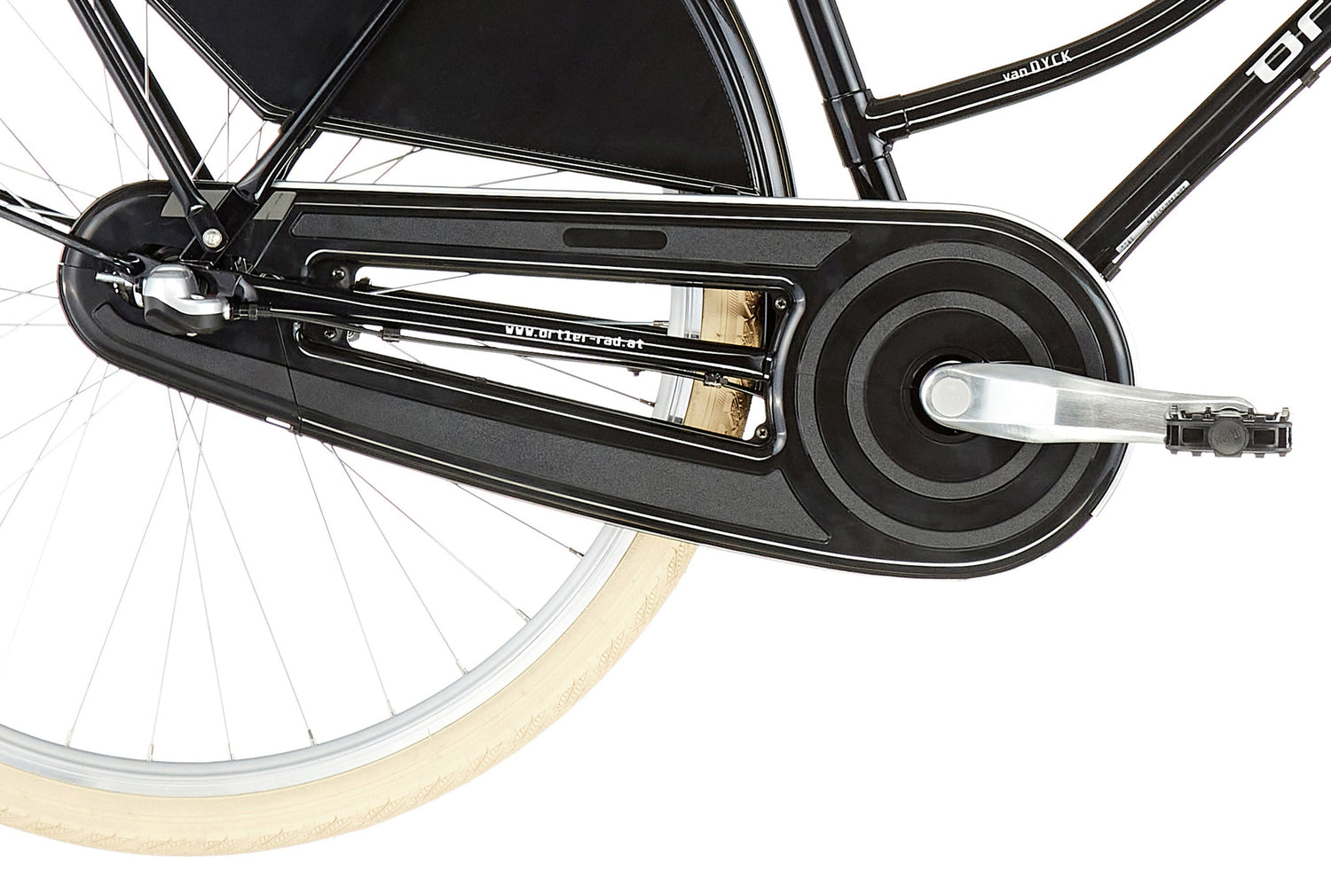 De Ortler Van Dyck is bedoeld voor iedereen die een moderne fiets zoekt in de stijl van de goede oude “Hollandfiets”. Het motto was duidelijk: eenvoud en terugbrengen tot het essentiële, om een Hollandfiets met hoogwaardige afwerking tegen een aantrekkelijke prijs te realiseren. De schokbestendige poedercoating verzegelt het zorgvuldig afgewerkte stalen frame betrouwbaar. Het vermijden van slijtagegevoelige onderdelen en de Shimano Nexus 3-versnellingsnaaf met terugtraprem maken de Ortler Van Dyck tot een trouwe metgezel voor jaren. Het geheel wordt afgerond met een betrouwbare Shimano naafdynamo en een moderne LED-achterstandlicht. Zo wordt de Ortler Van Dyck de ideale metgezel in het stadsleven.