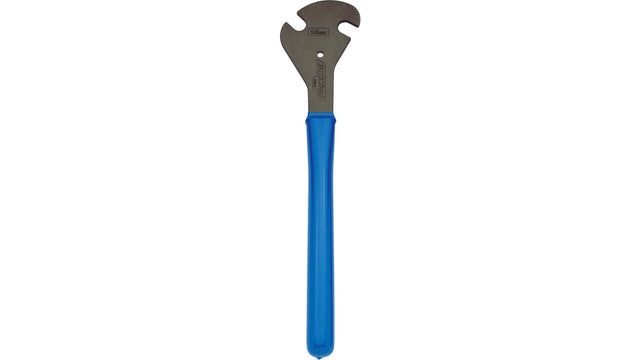 De pedaalsleutel PW-4 is ontworpen voor dagelijks gebruik in de werkplaats. Twee 15 mm openingen met een hoek van 30° en 45° zorgen te allen tijde voor optimale hefkracht, ongeacht de positie van de crank. De asymmetrische sleutelkop in oversized formaat is gemaakt van robuust Cromoly-staal en is smal genoeg om op alle pedaalassen te passen. Het ronde handvat van 35 centimeter biedt ook bij de moeilijkste gevallen voldoende hefkracht zonder in de hand te snijden.