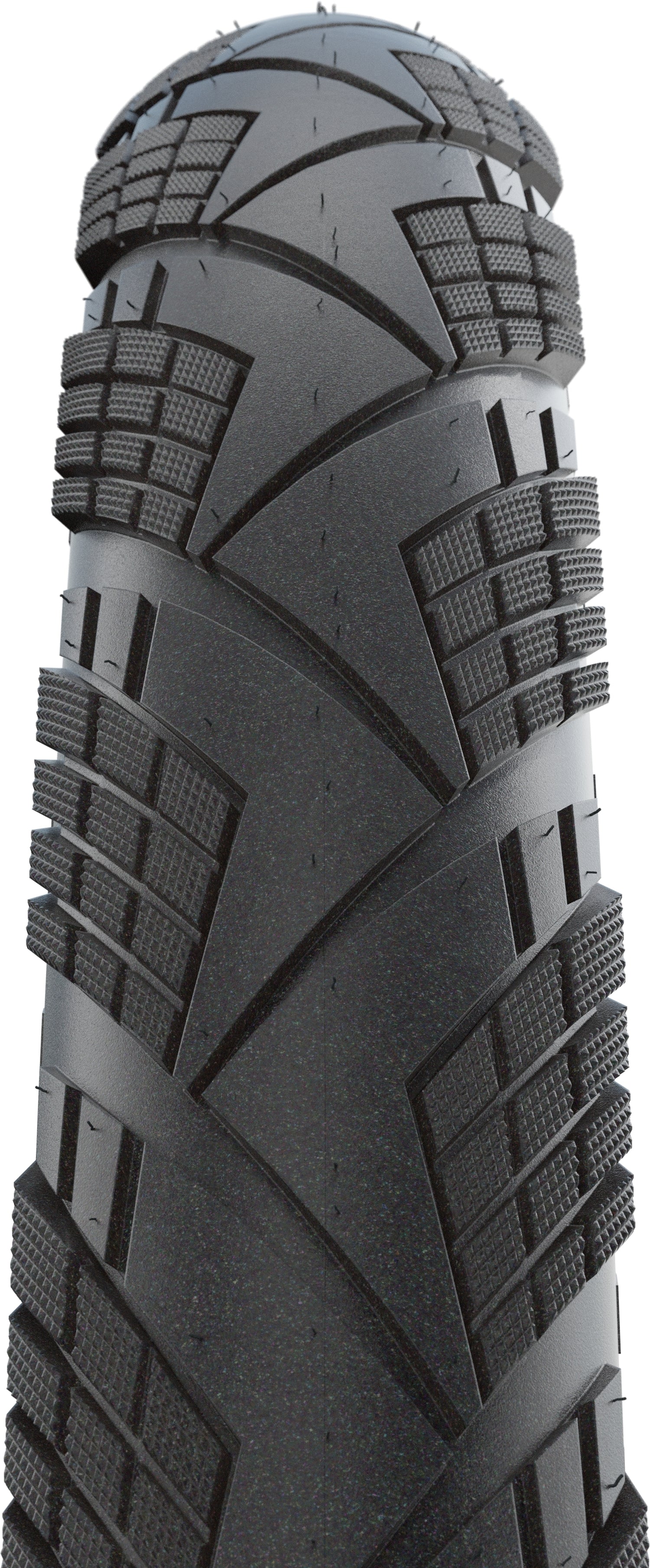 Ob Asphalt oder Naturstraße, der vielseitige Marathon-Reifen ist auf allen Wegen zu Hause. Im Alltag oder auf ganz großer Tour. Hierbei glänzt der MARATHON EFFICIENCY Evolution Line vor allem mit Langlebigkeit durch V-Guard Pannenschutz und seinen hohen Speed, die er mithilfe des ADDIX Race Compounds erreicht.