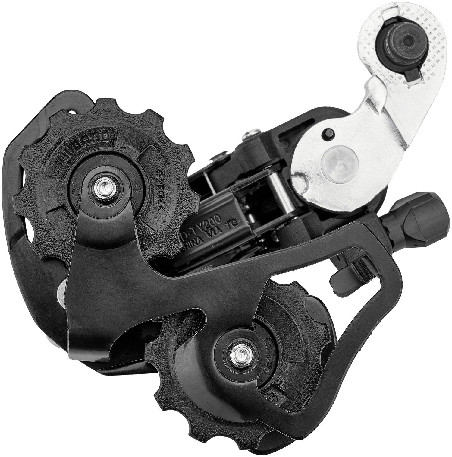 De SHIMANO TOURNEY TY200 derailleur, compatibel met 6- en 7-speed SIS Index-schakelingen, biedt betrouwbare schakelleistung en een sportief ontwerp.