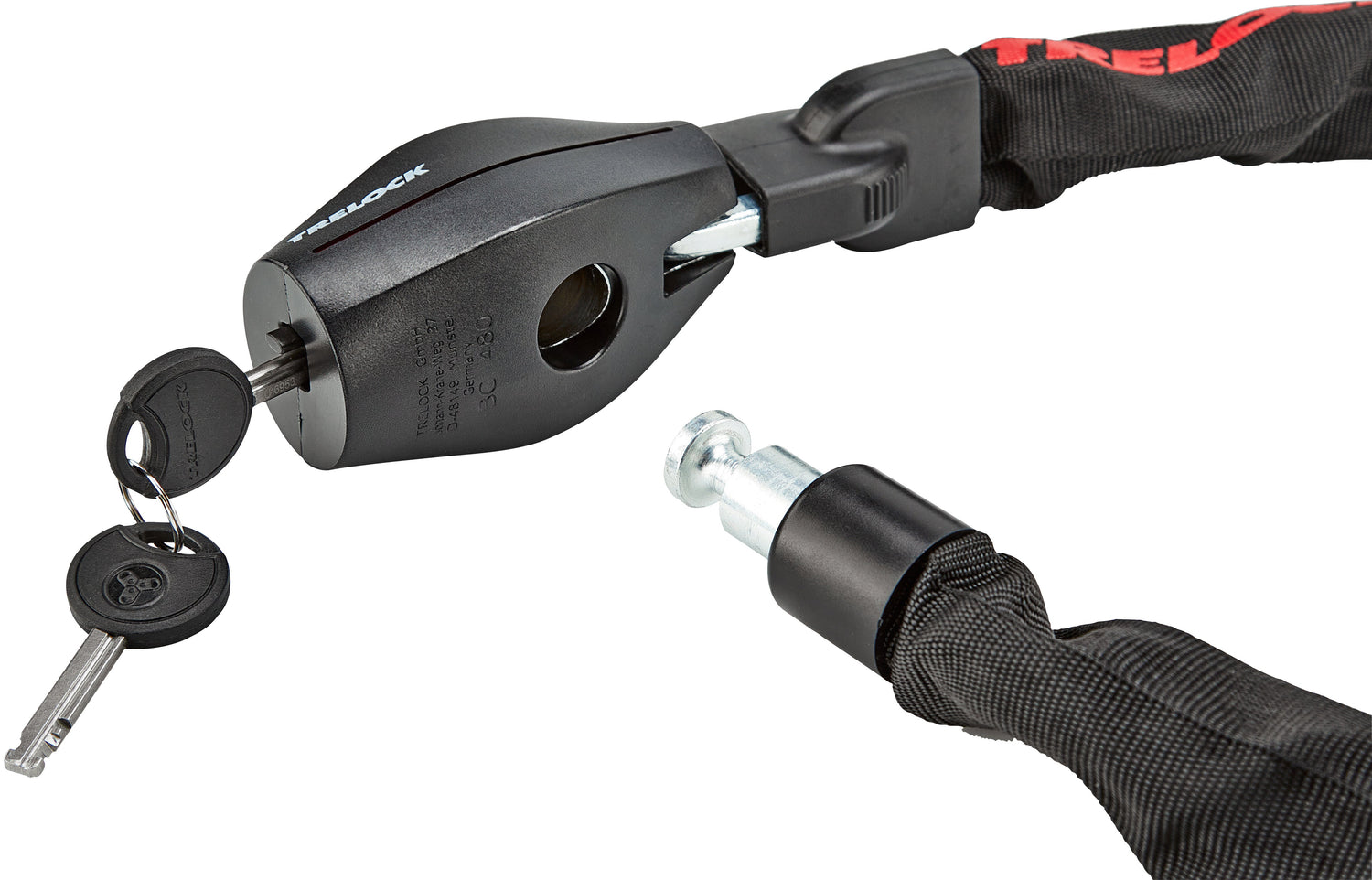 Bovendien bieden kettingsloten, afhankelijk van het beveiligingsniveau en de materiaalsterkte van de schakels, de hoogste veiligheid tegen fietsendieven. Net als de nieuwe kabelslotserie of de nieuwe vouwsloten van de COPS-serie, verschijnt de nieuwe kettingslotserie in een nieuw en elegant design, zonder afbreuk te doen aan de beproefde Trelock-veiligheid en kwaliteit.