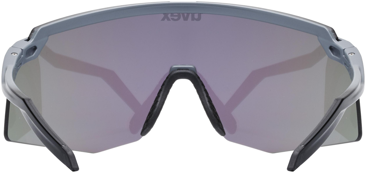 Op het zadel zitten. Trappen. Kilometers maken. Voor wie daarvan houdt, is de uvex pace stage precies de juiste bril. De stijlvolle, volledig gespiegelde fietsbril met groot panoramaraam biedt een breed gezichtsveld dat ook aan de randen vervormingsvrij blijft. Helder zicht en betrouwbare bescherming tegen schittering – inclusief UV-straling en wind. Zelfs bij felle sprints of tochten op warme dagen blijft het zicht vrij van beslagen. Dit is te danken aan de uvex supravision®-lens technologie met anti-fog coating en speciale ventilatiesleuven bovenaan de bril, die zorgen voor frisse luchtcirculatie bij de lens. Individueel verstelbare, antislip neuspads en zachte pootjes garanderen een comfortabele pasvorm onder de uvex i-volute MIPS racefietshelm. Licht design, sterke prestaties: uvex pace stage.