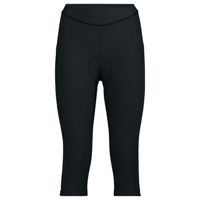 (Re)cycling-broek voor prestatiegerichte fietstochten. Het hoofdmateriaal van de driekwart lange damesfietsbloes is gemaakt van gerecycled polyamide, dat in een upcycling-proces wordt gewonnen uit textielmaterialen, zoals gebruikte visnetten. Het zitkussen van de fietsbroek is ook milieuvriendelijk, want het is vervaardigd uit een mix van gerecycled en biogebaseerd materiaal. Het naadloze Advanced Cycling Green-zitkussen garandeert een goede pasvorm en ademend vermogen en zorgt door de combinatie van schuimen met verschillende dichtheden voor een hoog zitcomfort in het zadel. Het milieuvriendelijke totaalpakket komt in een ergonomische 6-banen snit met vlakke naden en een platte tailleband. Zo biedt deze broek niet alleen maximaal comfort tijdens de tocht, maar ook iets goeds voor het milieu. Het VAUDE Green Shape-label staat voor een milieuvriendelijk, functioneel product gemaakt van duurzame materialen.