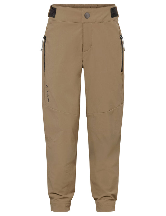 Voor kinderen die houden van actievolle dagen op het trail of in het bikepark: de coole, ultracomfortabele Moab Base fietsbroek voor kinderen doet zeker niet onder voor het beproefde model voor volwassenen. De zachte, verstelbare elastische tailleband is aan de achterkant hoger gesneden, de voorgevormde knieën bieden volledige bewegingsvrijheid met en zonder kniebeschermers. Met een smalle pijpzoom voor volledige controle op de fiets en ruime zakken met ritssluiting voor telefoon & co. Het slijtvast, elastisch materiaal is vuil- en waterafstotend. Het VAUDE Green Shape-label staat voor een milieuvriendelijk, functioneel product gemaakt van duurzame materialen.