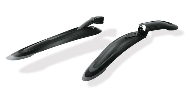 Deze spatborden kunnen zonder veel moeite aan vrijwel alle mountainbikes en trekkingfietsen worden gemonteerd en gedemonteerd. Voor het voorwiel hoeft alleen een schroef aangedraaid te worden, voor het achterwiel is er een snelkoppelsysteem waarmee je helemaal zonder gereedschap uitkomt.